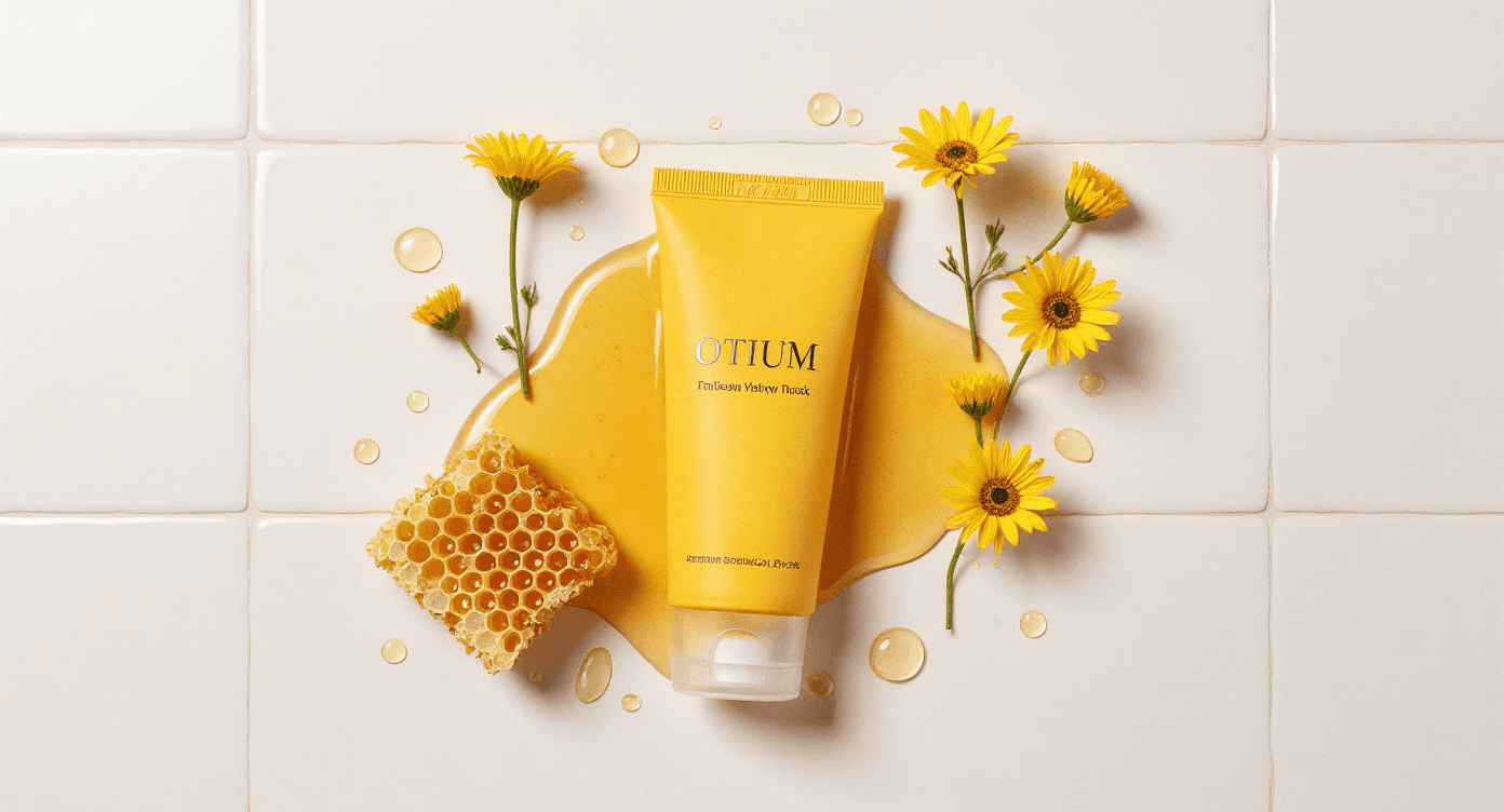 깨끗한 화이트 타일 위로 펼쳐진 노란 꽃들과 황금빛 꿀의 조화는 피부에 즉각적인 생기를 불어넣는 허니 마스크의 화사한 에너지를 상징합니다. 벌집에서 갓 추출한 듯한 신선한 영양 성분은 지친 살결을 맑게 깨우며, 평범한 일상의 공간을 가장 세련되고 향긋한 회복의 장소로 새롭게 정의해 줍니다.
